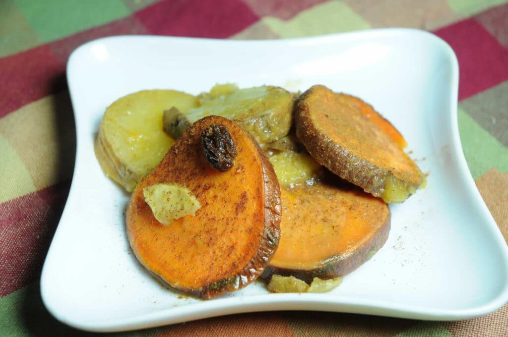 These sweet potatoes are cooked in apple cider. You can add raisins if you like.Ingredients