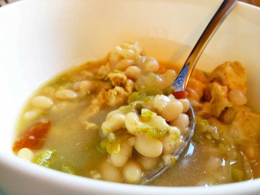 1. Chili: Cooked lima beans 1L chicken broth 500ml water 200g chopped raw chicken 1 tablespoon granulated garlic 1 tablespoon minced onion 1 tsp ground cumin 1 tsp mild chili powder 1 tsp dried oregano 300g chopped frozen/thawed chopped green chili peppers