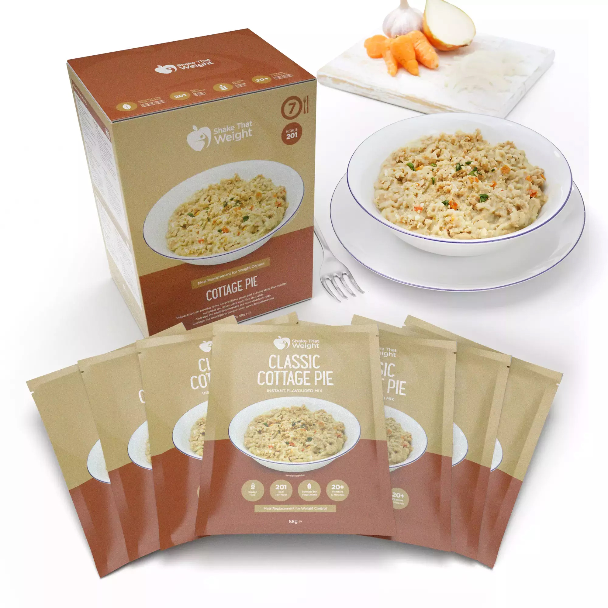 As well as tasting almost as good as a cottage pie you’ve slaved over in the kitchen for hours, our meal replacement cottage pie is also specially formulated to be packed full of all the good stuff your body needs when losing weight quickly. It contains more than 20 essential vitamins, minerals and nutrients, including being high in protein and fibre – this also helps keep you fuller for longer and fend off those pesky cravings between meals.