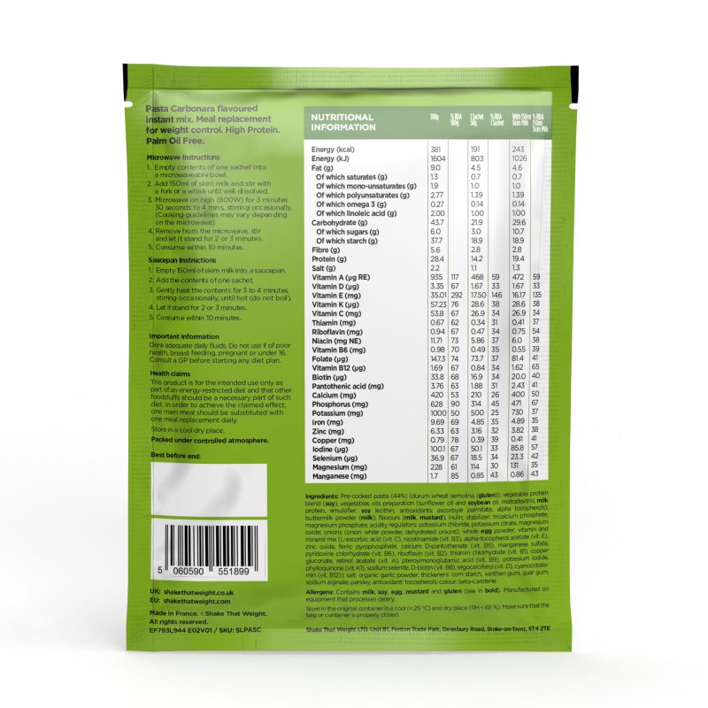 Packed full of vitamins, minerals and nutrients, our Pasta Carbonara can help you get 35% of your RDA of nutrients to help you stay healthier when losing weight. As well as being low in calories and vegetarian, it’s also high in protein and fibre, but low in sugar and fat. It’s suitable as a whole meal replacement on any of our diet plans, so is ideal as a lunch or dinner on your way to shedding those pounds.