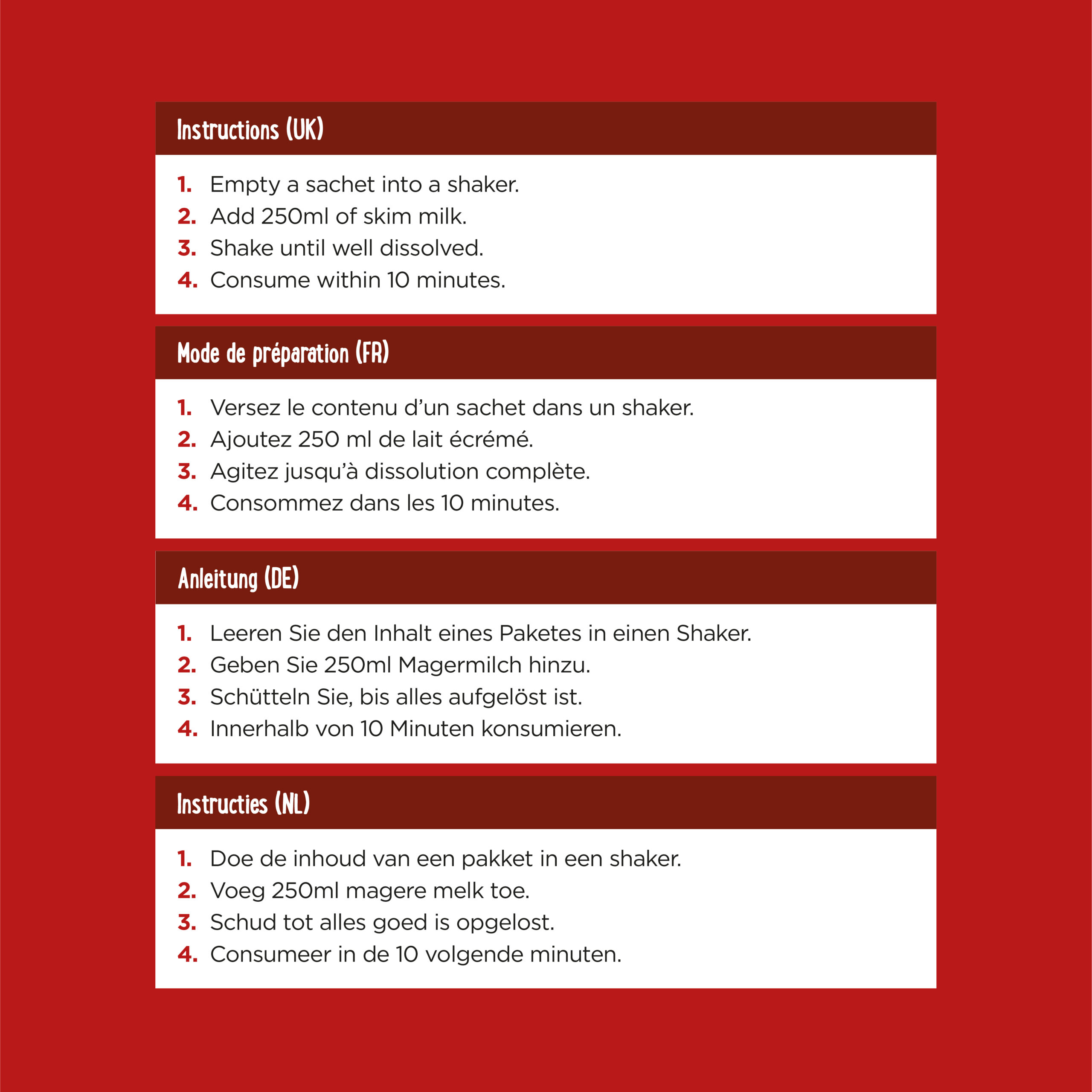 The rest of the sugars you see in our nutritional table come from the milk and whey protein used to make our shakes. Sugar found naturally in milk, fruit and vegetables does not count as free sugars. We do not need to cut down on these sugars, but remember that they are included in the “total sugar” figure found on food labels and in our nutritional tables. The sugars in milk are essential for health. Lactose is a critical nutrient that provides energy, helps with digestion, and confers a range of health benefits.