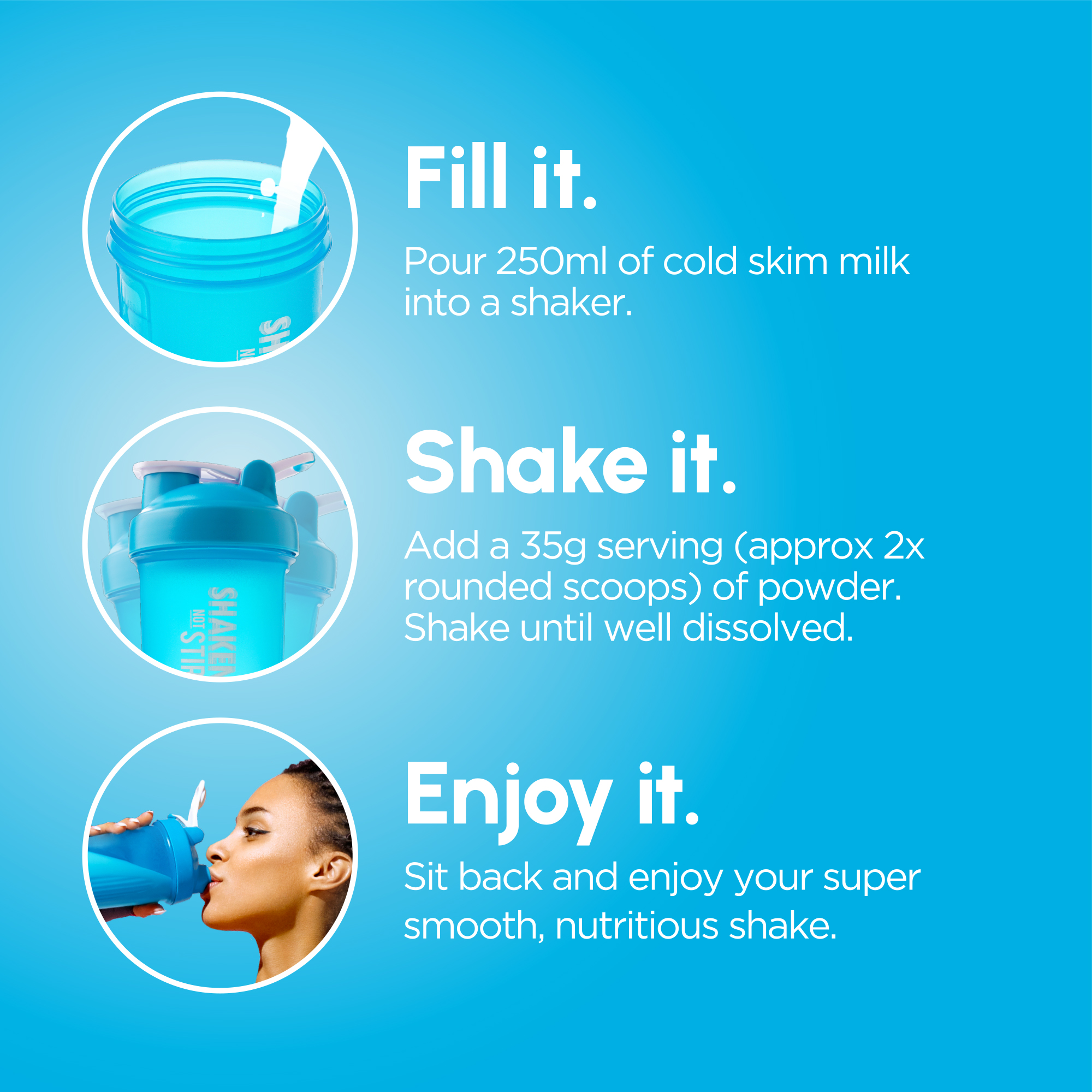Our shakes are best when mixed with skimmed milk or unsweetened soya milk – If you wish, you can mix them with water for a fortified meal of 125 calories.