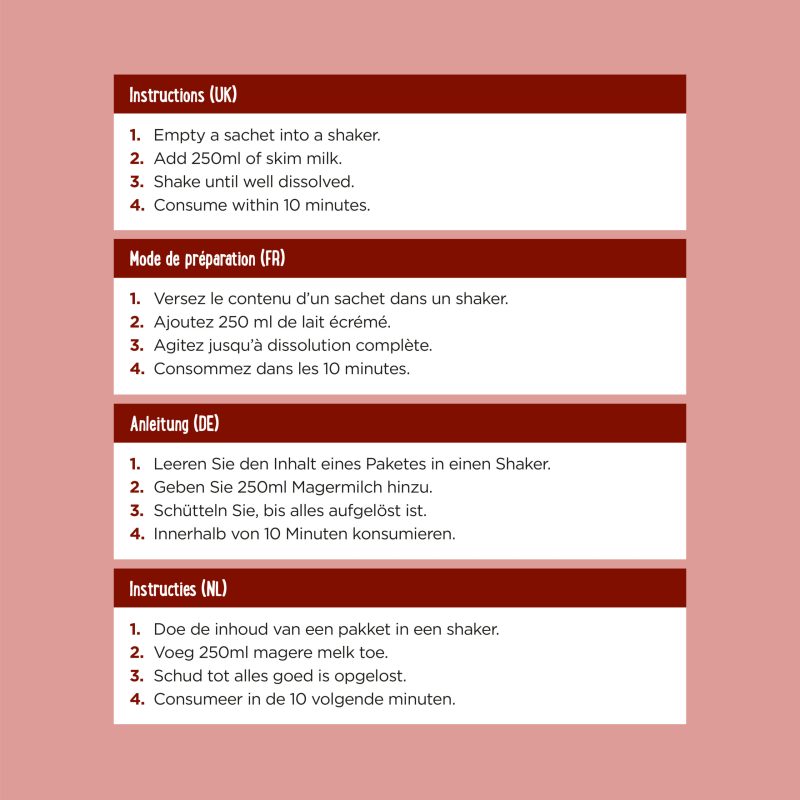 The rest of the sugars you see in our nutritional table come from the milk and whey protein used to make our shakes. Sugar found naturally in milk, fruit and vegetables does not count as free sugars. We do not need to cut down on these sugars, but remember that they are included in the “total sugar” figure found on food labels and in our nutritional tables. The sugars in milk are essential for health. Lactose is a critical nutrient that provides energy, helps with digestion, and confers a range of health benefits.